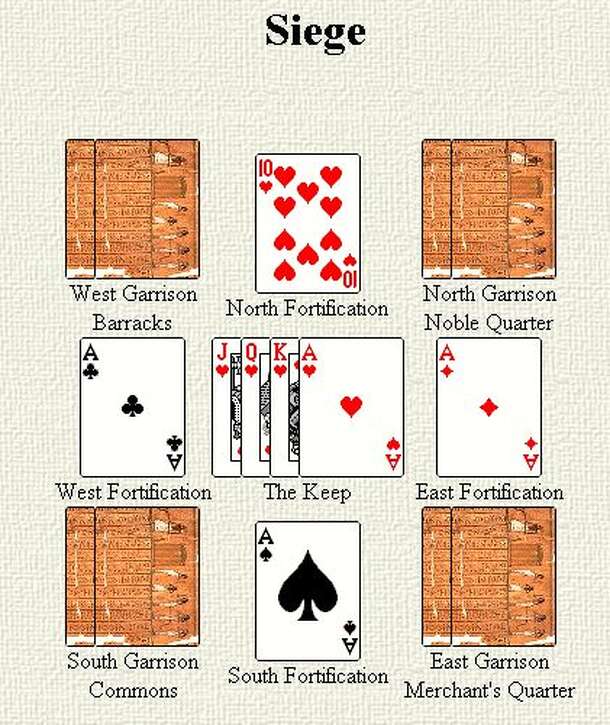 Players lay Siege to each others cities and castle in order to be the first to recover their royal family. Using one or more decks of normal playing cards (depending on number of players), each year of conflict is broken up into seasons where cards are used to attack, populate your castle or defend your walls. Rules for the game are available on the...