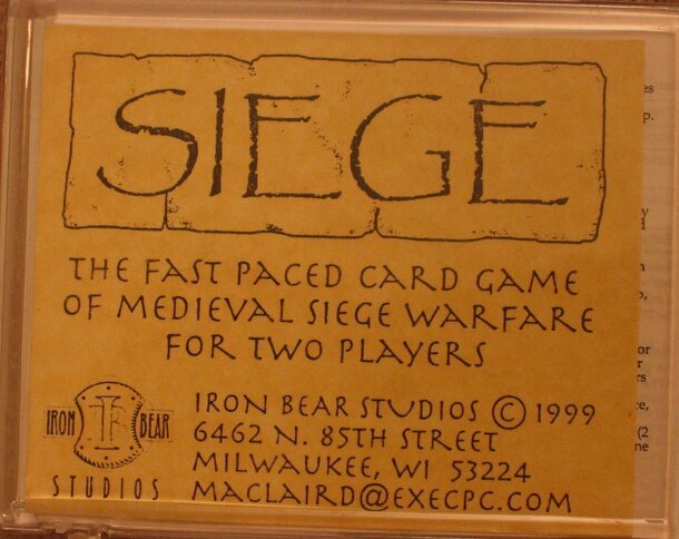The Siege can be played in two different ways: either as a wargame or as a boardgame. As a Wargame, The Siege can be played with two or more players. It is turned based, with a few options for how the turns progress. Paper miniatures are included in the game package. A grid, consisting of squares, is used as a board. Some scenery may be included, such as...