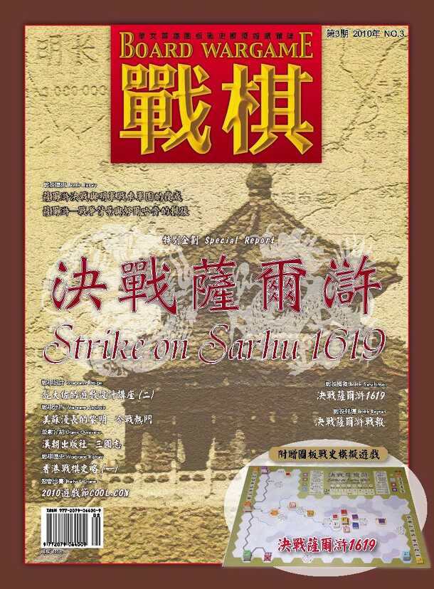 Strike on Sarhu 1619 (決戰薩爾滸1619) is a two-player board wargame that simulates the Battle of Sarhu, March 1 to March 5, 1619. http://en.wikipedia.org/wiki/Battle_of_Sarhu Each turn represents one day and each hex is about 10 km across. One player commands the Later Jin (後金) Eight Banners (八旗) and the other player commands the Ming (明) matchlocks and...