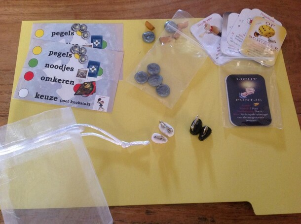 Gold seekers come over sea (by ship) and over land (by horse). With the gold they have found they can buy tools. These tools give you extras during the game and you will need them as well. The goal is to collect 6 points, the tools are worth 1 or 2 points. In a game turn you roll the dice and walk/sail exact the amount on the board. There you can have...