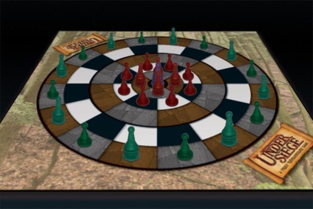 Under Siege is an abstract game played on a circular board by 2 players. One player attempts to move his King piece from the center and completely off the board. The other player attempts to capture the King piece. Turn based play where pieces move one space per move and capture opposing pieces by moving onto the space occupied by the piece being attacked....