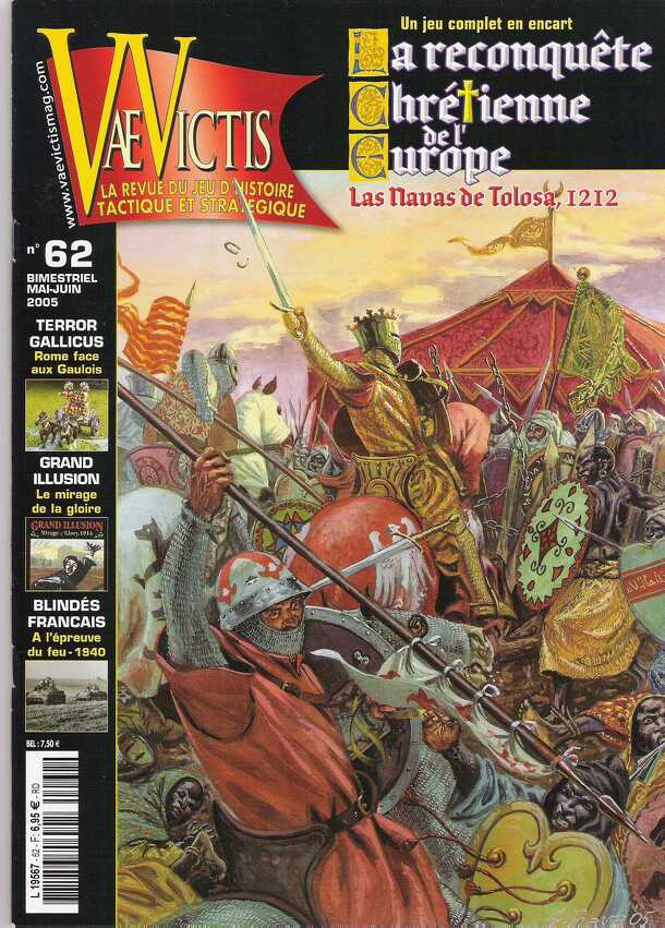 This game covers one of the battles of the Reconquista, Las Navas de Tolosa, 1212. It uses a refinement of the "Au fil de l'epee" system used in the games in issues 26 and 45. This game originally appeared in Vae Victis issue 62. Like all Vae Victis games, the counters need to be mounted and cut out before play. This issue also includes errata counters for...