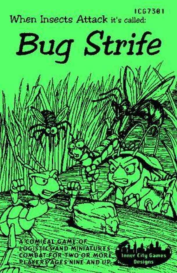 Bug Strife is a tabletop game that reminds me of many real time strategy games for the PC. Two or more players begin with certain bug forces and then, through food acquisition, hive construction and combat, establish their side as dominant on the battlefield. The book for Bug Strife is 33 pages of typing paper covered with a decently sturdy cardboard cover...
