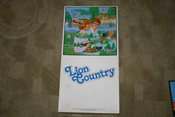 Lion Country is a Monopoly-esque game produced as a fundraiser for the Centre County Medical Society Auxiliary in 1983 by CPM Associates. In this game, you acquire and expand franchises. It uses the typical roll & move mechanic of Monopoly, but rather than buying groups of properties, you can expand almost any property by purchasing franchise discs thus...