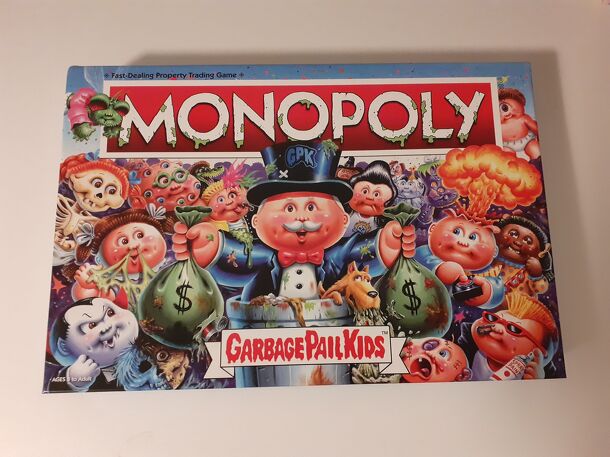 Relive the classic trading card game in a whole new way with MONOPOLY: Garbage Pail Kids. Featuring authentic licensed characters fans know and love. Collectible tokens include the Zit Goo Tube, Melting Eyeball, and Swirly Dog Poop as players move around the board to collect the iconic Garbage Pail Kids. Includes 1 Game Board 6 Collectible Tokens: Zit Goo...