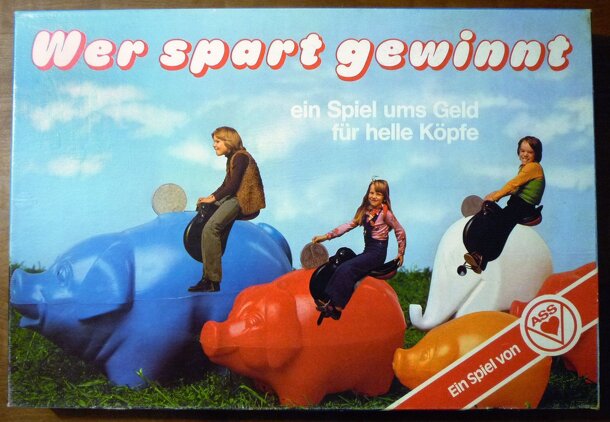 Simple children's dice game. Go around the board and pick up event cards depending on what field you get. Either get or pay money. For example: You get your pocket-money (5 DM). You help your dad washing the car (3 DM). You have lost your pencil. (2 DM) You buy an ice (1 DM)... If get around back to the start field you can put money on your savings book...