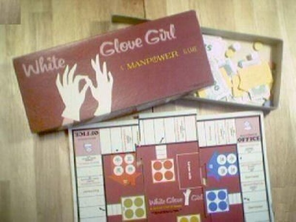 Obviously a promotional/motivational item from the Manpower Employment Agency. The object of the game is to be the first player to attain all 4 goals: Children's College Education ($2,000) - Vacation-Travel ($600) - Remodel Home ($750) - New Wardrobe ($200). The goals are attained by moving 4 colored tokens around the board from START to HOME and then...