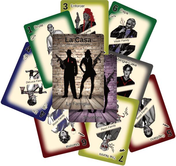 2-6 player game, 15-20 minute game play. Players are the bosses of their families in the 1930s gangster era. Players hire thugs, bookies and torpedos to help them gain control of the various rackets in the city. Card play weakens/enhances family strengths during the game. The major twist is the HIT die, played during a racket round, where every character...