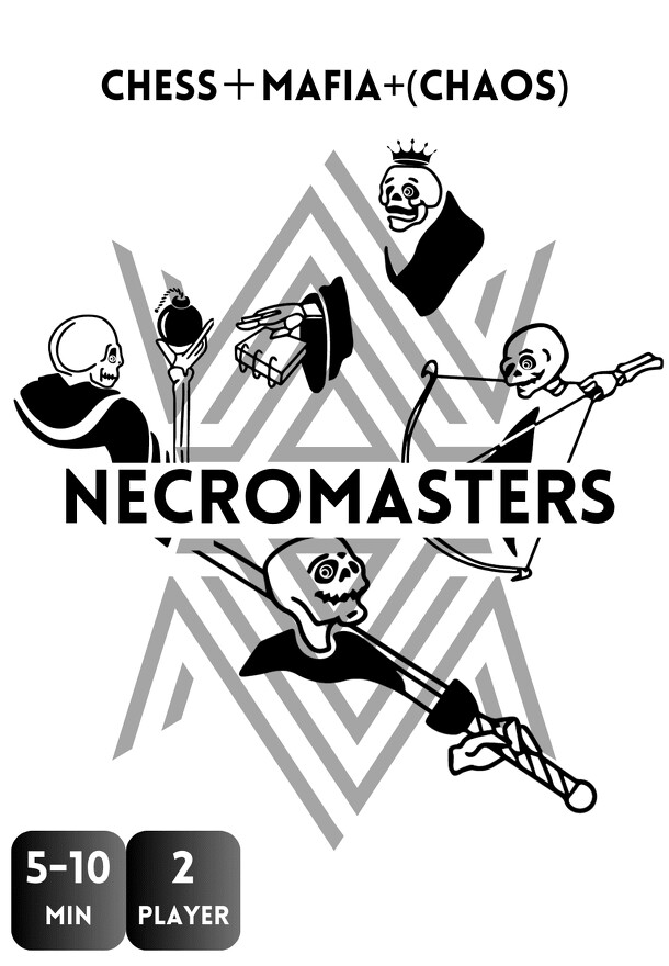NecroMaster is a two-player card game that combines the elements of Chess and Mafia in a simplified format. Players seek to attack the opponent's king: NecroMaster in order to win. Instead of pawns, players initially place cards facedown, thereby hiding the location of the king and others. Players can use the cards' abilities when they are face-up at the...
