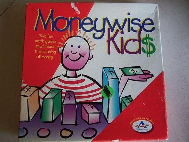 From Box: "Build your knowledge of money, how to earn it, and how to spend it in this exciting game!" Players advance on the board by rolling a die. Generally at each space the player earns the indicated amount of money, but before collecting, must spin the arrow which often excludes a coin denomination from the payout. The player then takes the earned...
