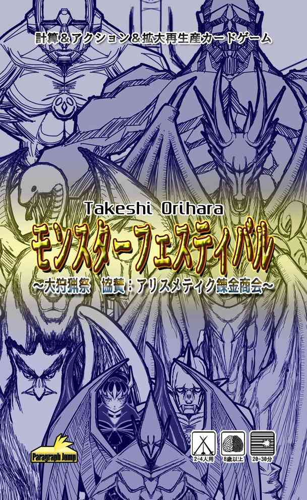 User summary: モンスター・フェスティバル ~大狩猟祭 協賛:アリスメティク錬金商会~ (Monsutā Fesutibaru ~ dai shuryō-sai kyōsan: Arisumetika renkin shōkai ~) means "Monster Festival - Big Hunting Festival, Supported by Arithmetic Alchemy Co. -" in English. Try to achieve the number on the Monster cards placed in a row on the table by combining the number on Monster cards in your hand with...