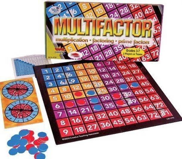 Develop a nimble mind by computing basic multiplication facts or, inversely, breaking products down into factors and possibly prime factors. In the game, players use two spinners to generate numbers, and have cards that track the results of the spins, depending on the game. In Product Capture, players claim the product of two factors they spin. Three or...