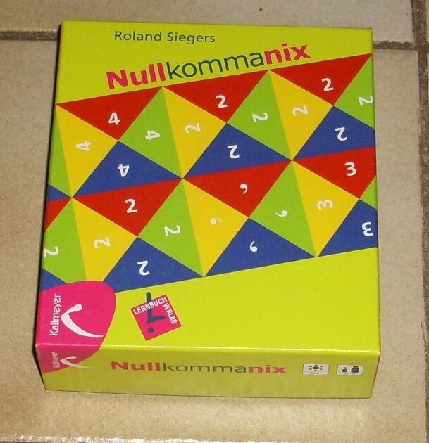 The game consists of tiles with four edges in four different colors. The tiles are placed between the players so each player faces one color edge (all tiles have to be aligned accordingly). Each edge contains a number which forms a larger number together with all the tiles in one row. There are also commas, which can turn a potentially large number into a...