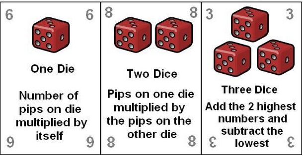 Powerdice is a light dice / card combination game for 2-4 players which can be played in 20 minutes. It is also a good learning aid in math for children. Players attempt to win tricks, but as your winning card does not count towards your points total, you need to win with as little margin as possible. Players are required to add 3 normal D6 dice for each...