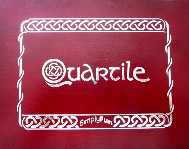 Quads is a game similar in looks to dominoes but far different in play. Each players draws four stones from a pool of 36 known as the Quarry. Each stone has a central "point value" number and each of the four outside edges has a number from 1 - 6. Players must match outside numbers with stones already played to add up to the central point value number on...