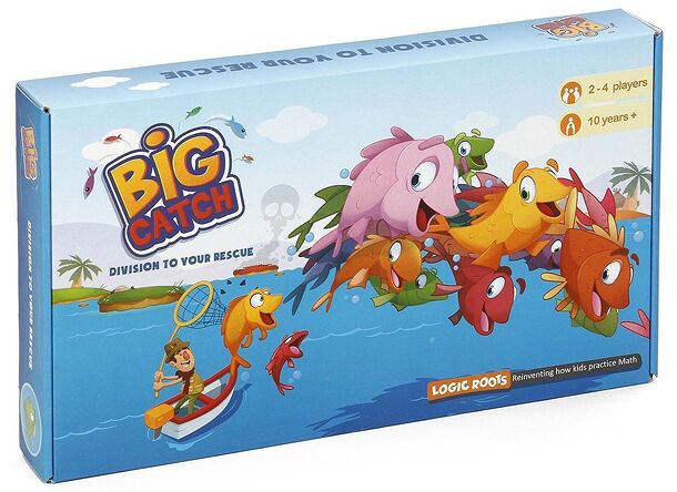 Big Catch is a division board game for students of grade 3 and up. It is designed to get them 8 times more division practice than classroom. Each player draws a card on their turn with a number that must be divided by the current number of islands in play. A token is placed on each island equal to the result, with the remainders being saved for subsequent...