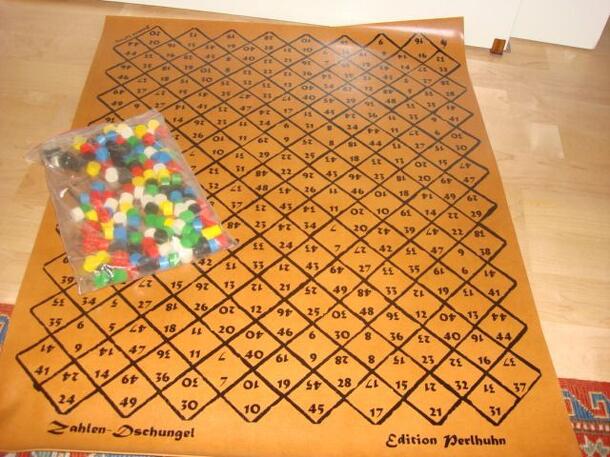There is a game board with the numbers 1 to 100 in ten rows. A transparent mask is placed on top of the board. The mask contains five holes and therefore leaves five numbers open. A player now rolls a number of dice (4-7, depending on the location of the mask) and tries to calculate the open numbers by addition, subtraction, division and multiplication. If...