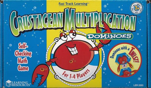 A math domino game for 1-4 players. At the beginning of a 2-4 player game, each player is dealt six hexagonal crab dominoes. Each crab holds a number between its claws, which must be matched to the equation of another crab. Each crab has a single equation on one of its three hind edges, in which one of the factors is replaced with an empty box, that must...