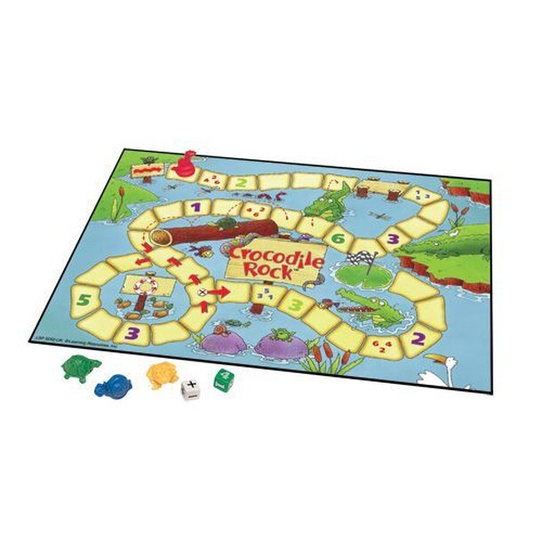The game is a race between different animals (interesting selection of "runners": frog, snake, turtle and snail). The winner is the first to reach the end of the track: the Crocodile Rock! The peculiarity of the game is that each player on her turn throw three six-sided dice: two are regular ones numbered from 1 to 6 but the third one displays only "+" or...