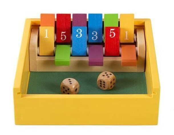 From the manufacturer: Double Shutter Junior doubles the family fun. Roll the dice and add up the dots to shut the tiles of your choice. The tile total must match the dot total in any combination you want. This fun family game helps develop math skills while being fast to learn and easy to play. Double Shutter Junior comes with a double shutter box that...