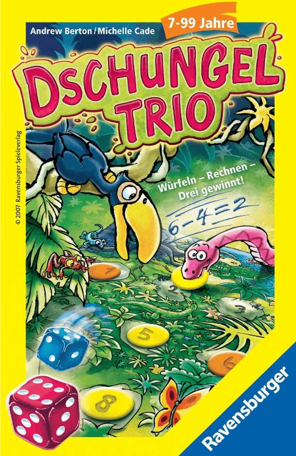 There are 3x3 field game board and 2 dice for younger players and 4x4 field game board and 3 dice for older players in the game. The player who has three chips in a row (horizontally, vertically or diagonally) first wins. In his turn player roll the dice and numbers on the dice may be added together, subtracted, multiplied and divided, so that the result...
