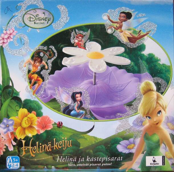 Tinker-bell game. Players try to get rid of all of their glass balls. First a player draws a card with a number or a simple calculation like 3-1, and then the player throws a die which shows either - or +. If the die shows +, player puts as many glass balls as was written on the card on the flower in the middle of the board. If the die shows - player takes...