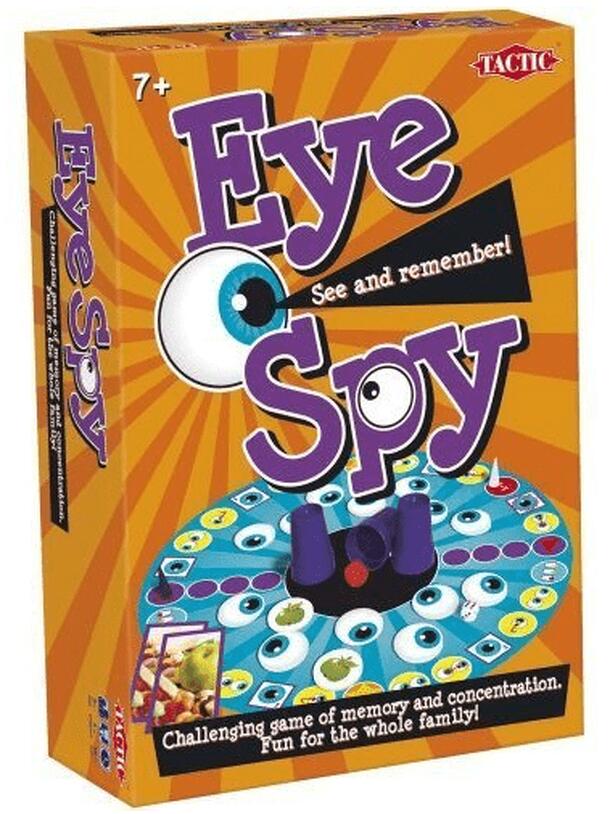 (Translated from the box, in Norwegian) Does your memory last for more than 30 seconds? "Eye Spy" is an exiting and challenging board game about observation, memory and luck. It is played with 2 teams, and the team that sees best and remember the most will win. Memorize a picture for 30 seconds and answer questions read by the other team. Try to find...