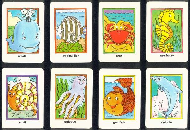 This is a children's game that combines memory with some maths skill. You pick a fish from the lake (that is the game board). Every fish has a number on it and you have to pick flamingos until you reach the right number or more. The problem is that a flamingo can stand either on one or two legs which is hidden from the players so you have to remember this....