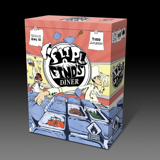 Flip and Find run a diner that is in complete chaos. Orders are pouring in and they can’t remember where they put their ingredients! In this memory game, players flip tiles to find the ingredients to complete orders to collect money (more complex orders are more valuable) and tips. The game is set up by dealing 25 tiles face-down in a 5x5 grid, and dealing...