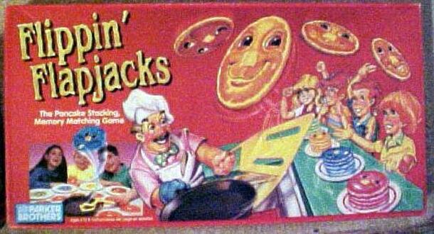 Be the first player to fill your plate with the five flapjacks that match it. Each player chooses a color plate and places the 20 (28 in Fundex edition) flapjacks color side down. On your turn, if you turn over your color flapjack, you keep it. If not, you put it on the flapjack flipper and hit the spatula. If it lands color side up, that player keeps it....