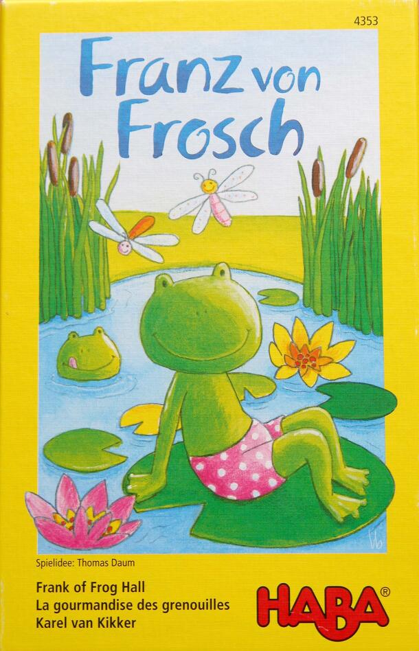 From the publisher's web site: "Frog Pond is a fun and educative memory game for the youngest ones in the family! The cute frogs have a competition on who will be the first one to reach the island in the middle of the pond. The players try to find 4 similar coloured water lilies from the table and place them on the game board, so that their frogs can leap...