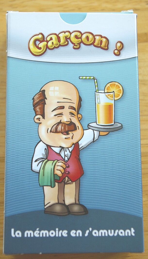 "Garçon" is French for "waiter". It is a card game in which the players hold the role of a waiter in a Café Bar. Their objective is to memorize orders in order to gain the maximum in tips, but in order to carry them it will be necessary to judiciously use the Event Cards, to thwart the plans of the other players and to pay attention to the time which...