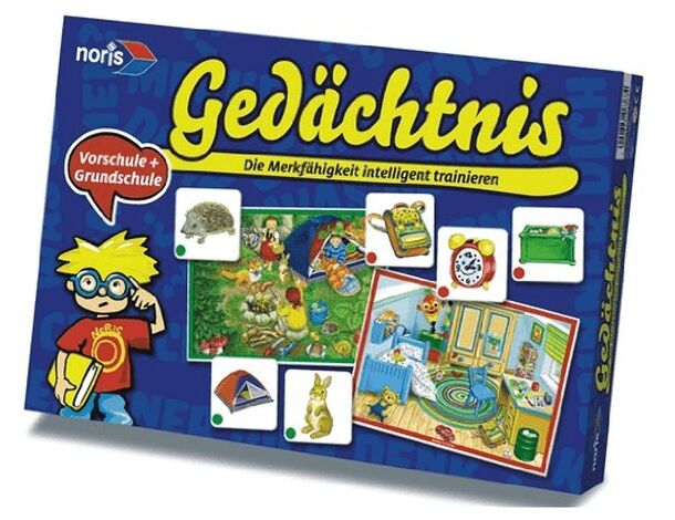 Objective: 5 different games for kids to train memory - 168 images/pictures, 4 large pictured boards - game 1: memorize as many details of a large picture as possible game 2: train your associative memory of pictures in combination with colours game 3: train sequences (similar to game 6) game 4: memorize as many images as possible game 5: functional...