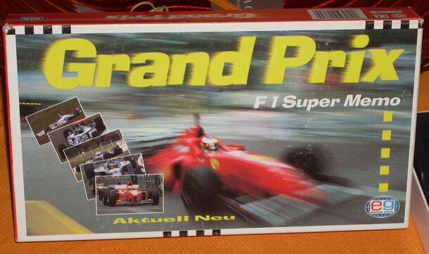 A very difficult memory game about F1 racing. The images on the cards by guessing are all Formula 1 cars of the late '90s. Each player has a car to move forward on the circuit for each pair of cards turns out, also if the couple just discovered coincides with one of the cards he has in hand, obtained early in the game, will advance to a one bonus space....