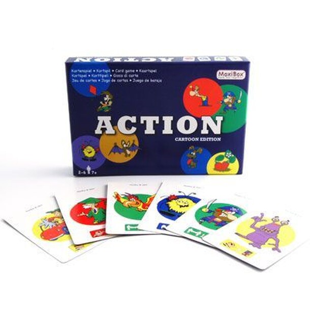 From the publishers homepage: Fun and entertaining cardgame for children and families. ACTION is an advanced Memory game where it matters when you make the pairs/tricks. Each trick contains an ACTION you have to execute when the trick is made. In ACTION you will play cards on both hand and table. Pair the cards to make tricks. Each trick results in an...