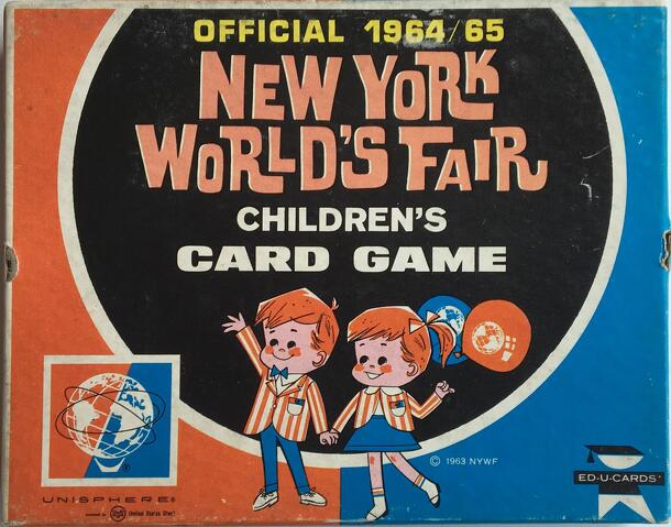 This very simple children's card game was published as a souvenir sold at the 1964/65 World's Fair in New York. The 36-card deck features photographs of some of the fair's pavilions and exhibits. Players deal out the deck face down on the table and take turns turning over two cards. Cards that match are captured; those that don't are turned face down...