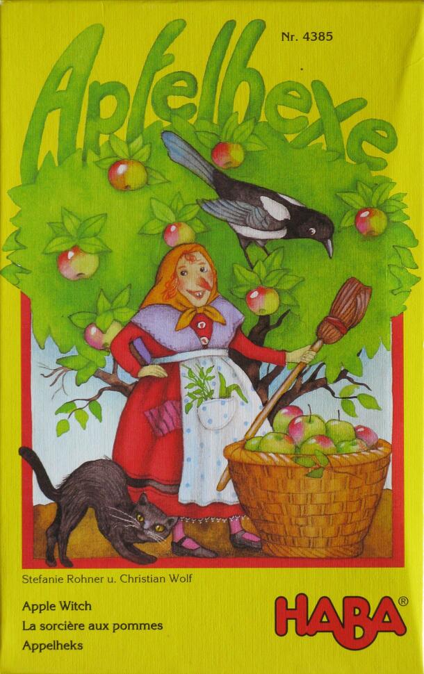 In this HABA game,each player tries to be the first to collect five apples. There is a special die with three different side: Green spot: Hide an apple under the table. Red Spot: Hide the Apple Witch. Magpie: Helps players to steal other players apple. Choose a player and try to steal him an apple or the witch. If this player doesn't have anything, you...