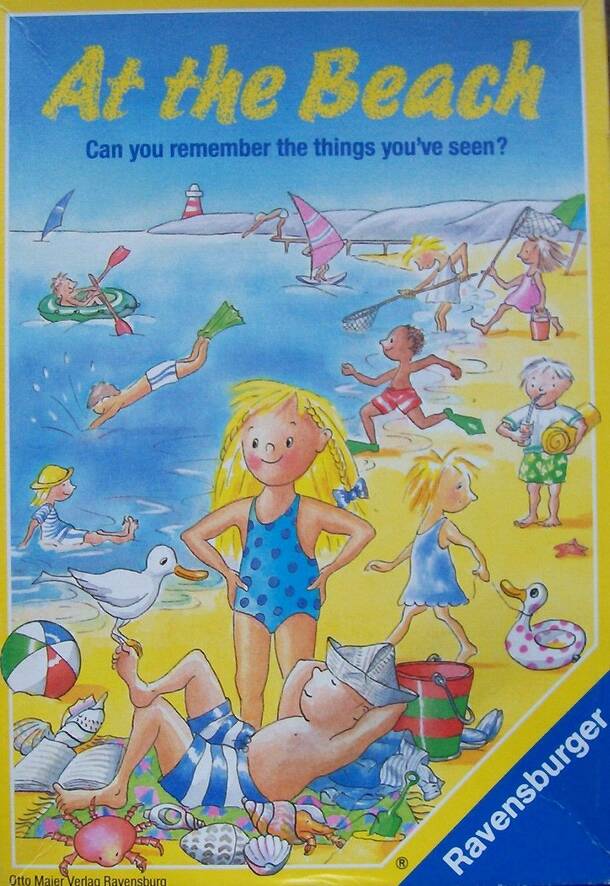 Content: 27 picture cards, 4 value stones, 1 pawn, 1 dog, board In this game a young boy walks around the strand and looks to see what he can discover there. When he meets his girlfriend he has to tell what he has seen. The winner is the player who first reaches the field with the sun with his value stone. Each turn players get tiles with pictures of...