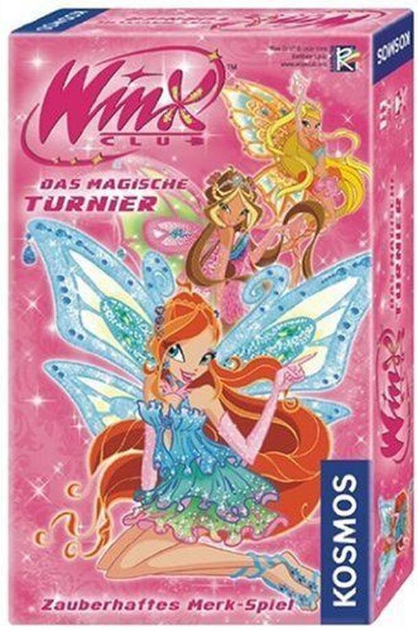 A Winx Club themed memory game. The game contains 12 task cards and 48 tournament cards. The task cards show which three Winx characters the player has to find. The tournament cards also show these characters. The task cards are shuffled and distributed evenly among all players (face down). The 48 tournament cards are shuffled and laid out, also face down....