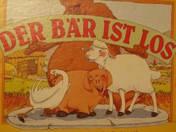 Each player has to bring home his own three animals (a sheep, a pig and a goose). On every turn two dice are rolled, one to indicate the type of animal that has to be moved and one for the number of spaces the animal can move. There is also a bear on the board that can be moved with the dice. If an animal lands on the space of the bear, it is sent back to...