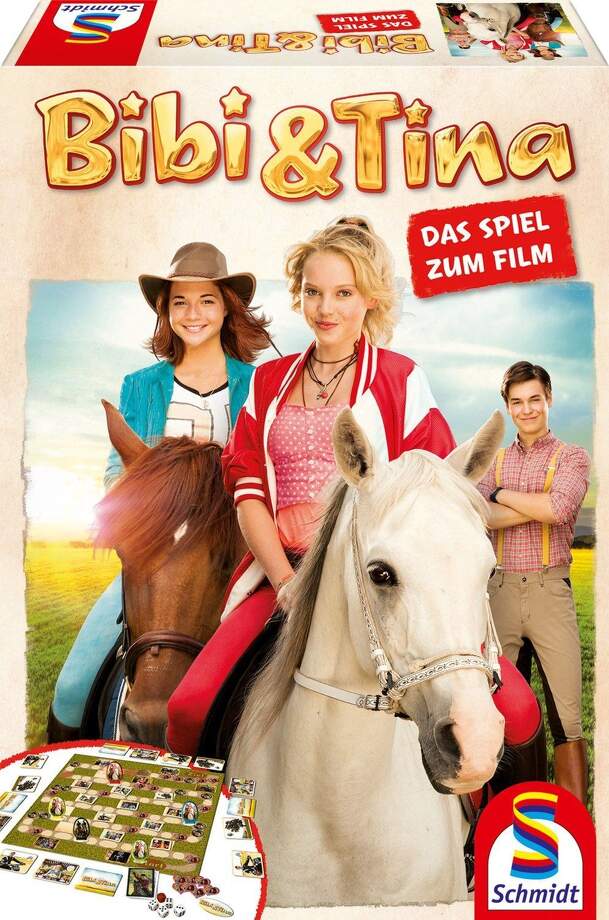 A memory and racing game themed on the German audiobook series "Bibi & Tina". Players race hobby horses over a course of action cards, carrying out the action at each card (eg. jump over or ride in a circle). At the end of the course they use the magnet on the end of the hobby horse's stick to pick up a symbol card that matches on of the four symbols they...