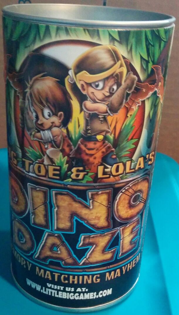 A dinosaur-themed memory game. The 49 dino cards (7 different species in 7 different colours) and 7 T. rex cards are shuffled. Nine of them are placed face-down in a 3 x 3 grid to form the "dino hide". The remaining cards form the draw deck. The T. rex token is placed at the center of the table. Before the game starts, the 9 cards in the dino hide are...