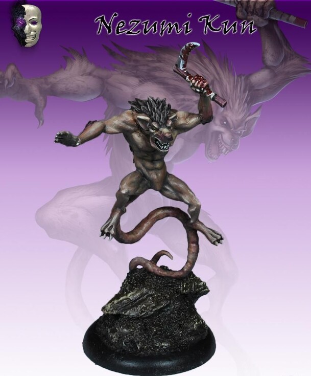 Little is known about the origins of Nezumi Kun, even the scholars of the Blue library could only guess at the occult rituals and black magic used to create this “Son of Nezumi”. The savage Yokai appears more wild and feral than its “father”, striking from nowhere, only a rank stench left to mark its passage before it scuttles away into the darkness....