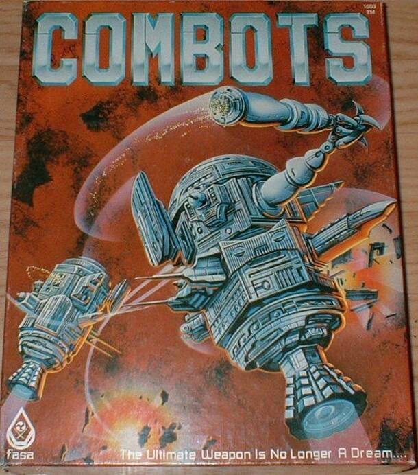 Two-player SF wargame (of sorts) pitting two modular gladiatorial-combat robots ("combots") against one another. (Where have we seen this before?) Each robot is represented by a composite miniature that you put together using the available components. There are two different command units (heads), two main thrusters (bottoms), and four equipment tenders...