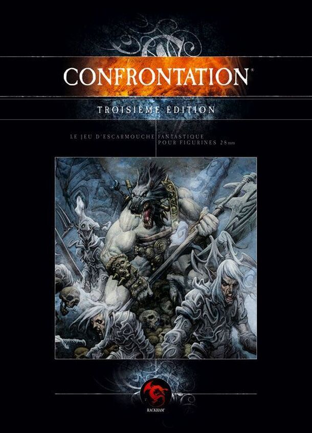 Confrontation and Rag'narok merge into one game: Confrontation: The Age of the Rag'Narok. No longer played with single miniatures (Confrontation) or massive units (Rag'narok), each player commands several small units of two to fifteen miniatures. Completely new concepts like Elixir Points and Tactics were added to this game, while it still uses many of the...