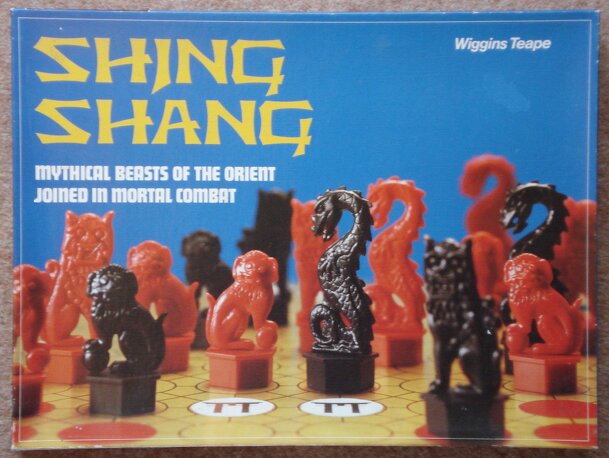 Tagline: "Mythical Creatures Locked in Mortal Combat." Shing-Shang is a chess-like game played on a 10x8 grid. The object of the game is to advance "dragon" pieces onto the opponent's protected area of the board. You control 2 dragons (which move by jumping over and capturing other pieces - as in draughts), 4 lions (can move one space each, or by jumping...