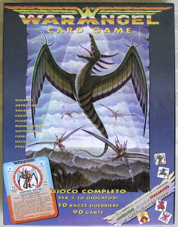Warangel is a light, fantasy wargame, comprising 120 warrior races, created and illustrated by Angelo Porazzi. The first edition appeared in Italy in 1996 as a collectible game. In 2000 the first boxed edition was produced and was awarded in 4 italian Fairs: Best Italian BoardGame in Ludex 2000 Bologna BEST ITALIAN GAME in LuccaGames 2000, greatest luding...