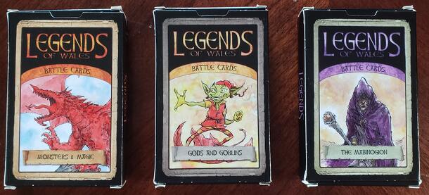 Chwedlau Cymru / Legends of Wales is a card game featuring creatures and monsters from Welsh mythology such as the Twrch Trwyth or the Red Dragon itself. Each of the cards features a different creature along with a value attribute (up to 10) and a set of attribute scores: Strength, Skill, Magic and Fear, as well as a "size" attribute that can either be...