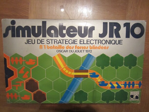 Generic wargame played on a hex grid pitting two asymetric forces against each other. The mounted game board features a river, forests, a hill, a road and a bridge. The 40 units are mortars, tanks, antitanks and infantry. They are rated for movement and range. A strict IGO-UGO sequence is followed. A timer is used to add some stress. An electronic device...
