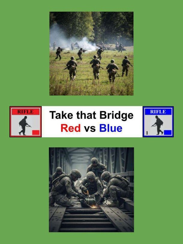 A Blue company with purpose sets its sight, To reach the bridge, a perilous command, Before explosives consign to the night Their path on, as woods conceal the Red plan. With fire and maneuver, Blue’s tactics laid Each volley sent to pin the revealed foe, While comrades swift through cover unafraid, Advance with stealth where life and death may flow. Each...